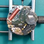2023-06-04 / 最終更新日時 : 2023-06-04 IKEBE 未分類 セイコー ジャイロマーベルのオーバーホール セイコー得意のマジックレバー式自動巻機構を、手巻きのマーベルに乗せたようなムーブ構成です。ゼンマイスリップ仕組みも特異で、手巻きのゼンマイの先端をスリップ用の短いゼンマイ?に引っ掛かけてあります。文字通り、「スリッピング […]